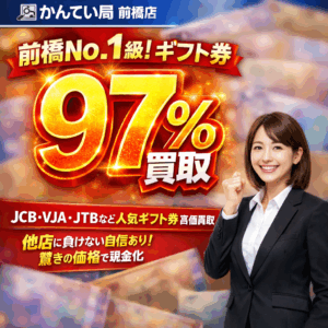 かんてい局 前橋店では、皆さまの家計を応援したく、人気のギフト券を地域最高クラスの「97%」でお買取りしております!